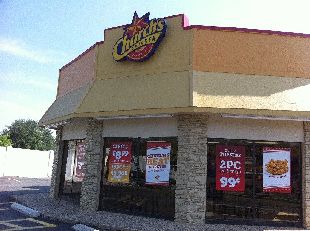 Church's Chicken sert du poulet fraîchement préparé, de haute qualité et savoureux, à la fois Original et Spicier Spicy, ainsi que des tenders accompagnés d'accompagnements classiques et de biscuits faits à la main. Chez Church's®, tout est question de grosses portions, de saveurs audacieuses, d'accueil chaleureux et de la possibilité de se resservir. Parce qu'ils savent que c'est comme ça que les clients l'aiment - alors c'est comme ça qu'ils le font. C'est ainsi depuis 66 ans et ce n'est pas près de changer.