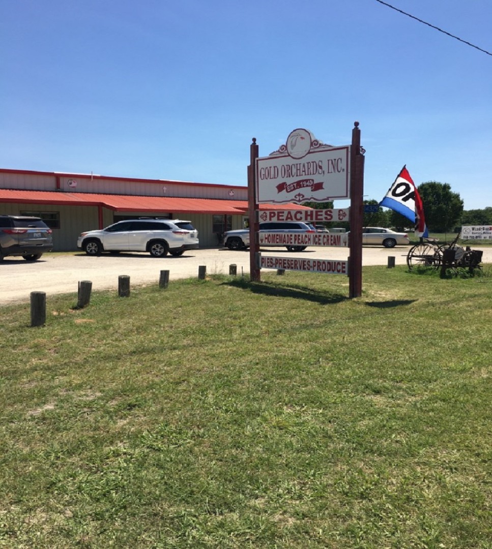 Gold Orchards, Inc. est une entreprise familiale qui propose des pêches, des prunes, des nectarines, des produits de saison, des glaces à la pêche et des tartes. Une boulangerie sur place sert des tartes et des cobbler tout droit sortis du four, ainsi que la meilleure glace à la pêche. Le magasin propose également des produits d'épicerie spécialisés et une boutique de souvenirs.