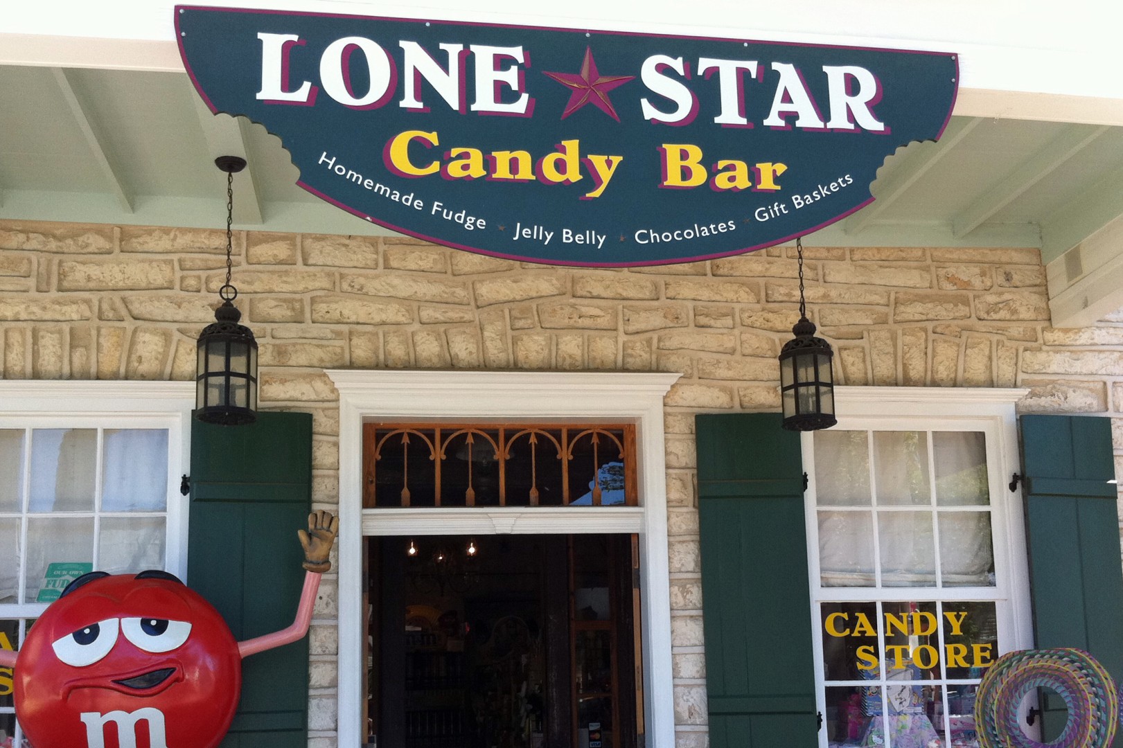 Lone Star Candy Bar propose plus de 40 parfums de fudge frais fait maison, 36 parfums de Jelly Belly, 36 parfums de tire à l'eau salée, 21 couleurs de M & Ms, une large sélection de barres chocolatées nostalgiques et bien d'autres choses encore. On y trouve également du fudge à la pêche, fabriqué avec des pêches de Hill Country. Lone Star Candy Bar est également célèbre pour ses produits enrobés de chocolat, notamment le bacon enrobé de chocolat, les cornichons, les jalapenos, les twinkies et les rouleaux divinity.