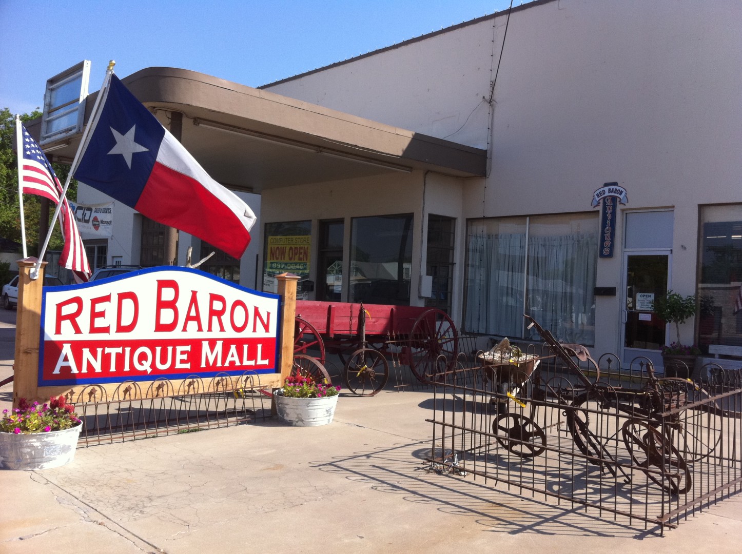 Le Red Baron Antique Mall est un magasin de 10 000 pieds carrés qui propose des meubles anciens, de la verrerie, de la porcelaine, des bijoux, des pièces de monnaie, des lustres, des lampes à huile, des pièces de lampes, des jouets, des objets primitifs, des objets western, nautiques, architecturaux et publicitaires, et bien d'autres choses encore.