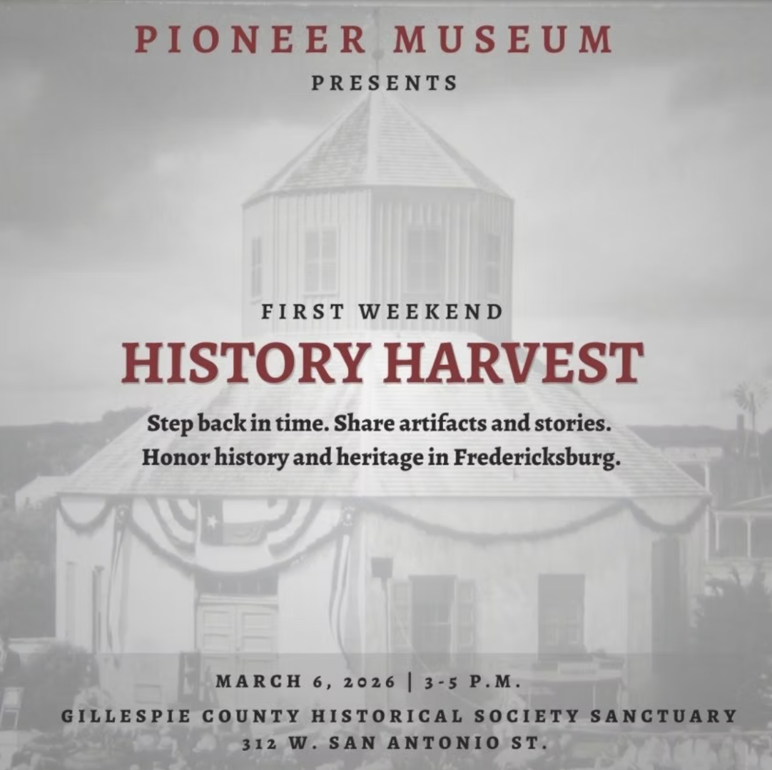 The goal of the History Harvest is to share and preserve the artifacts and stories of Gillespie County’s first families. The event will feature a variety of presenters who will provide brief oral histories, family stories or a show and tell of a family heirloom or artifact. More details to come.