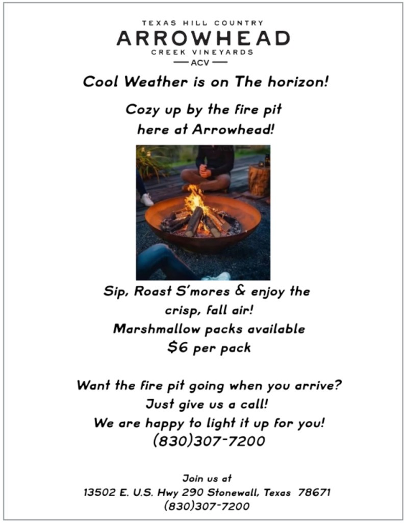 Invitation à un feu ouvert @ Arrowhead Vineyards13502 E. U.S. Highway 290