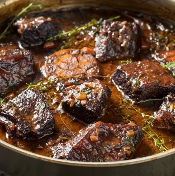 Plat principal : Rôti de pot au feu braisé au cidre, pommes de terre croustillantes au beurre de sauge